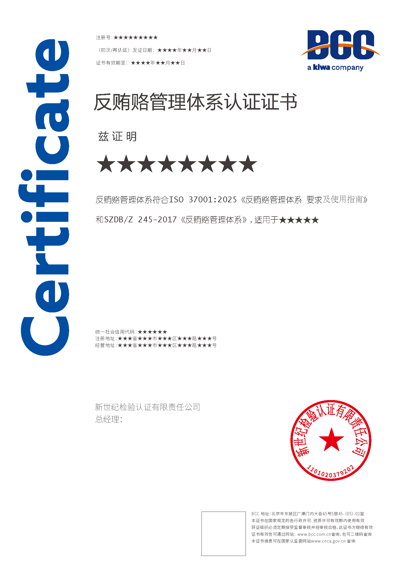 反賄賂管理體系證書