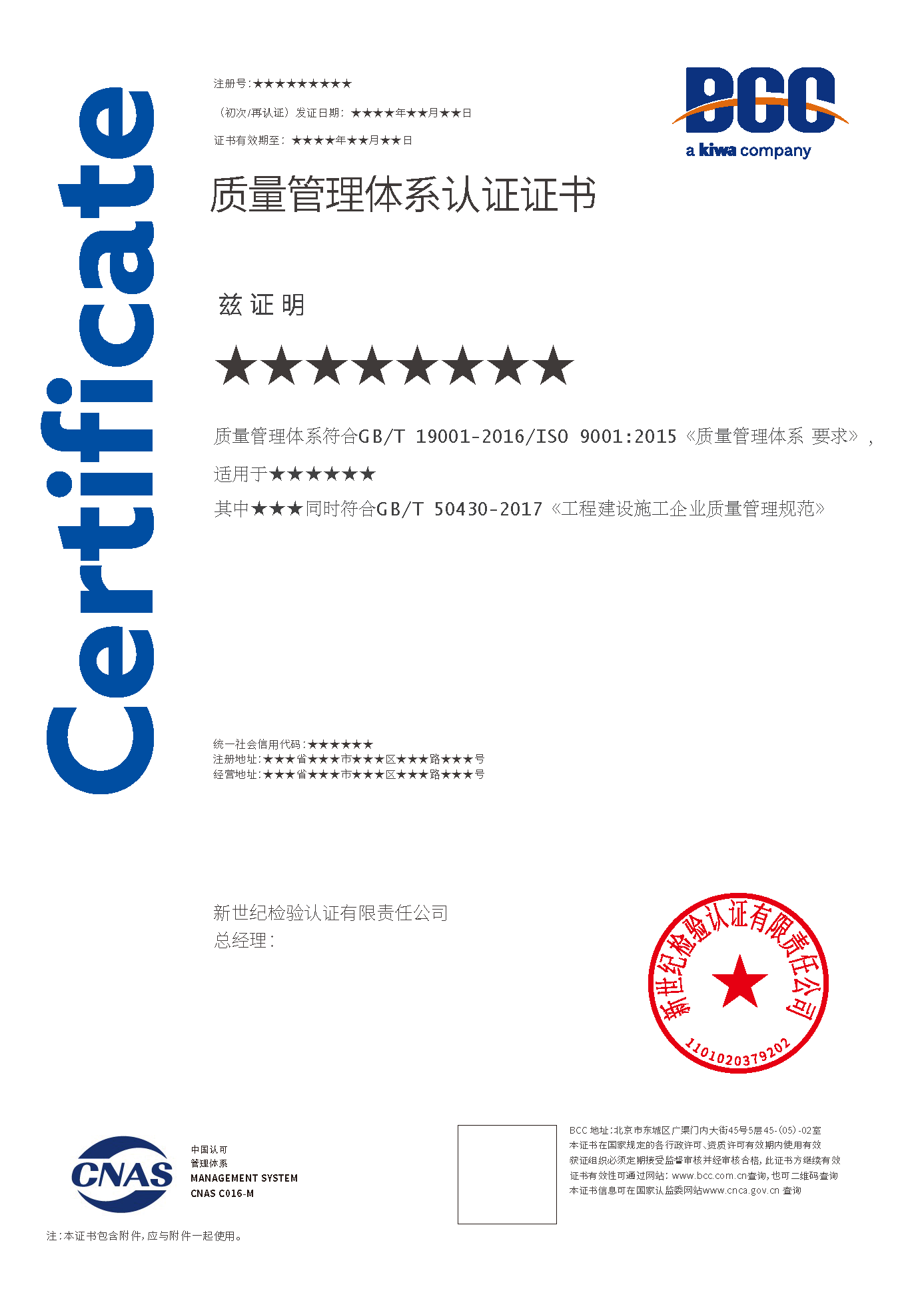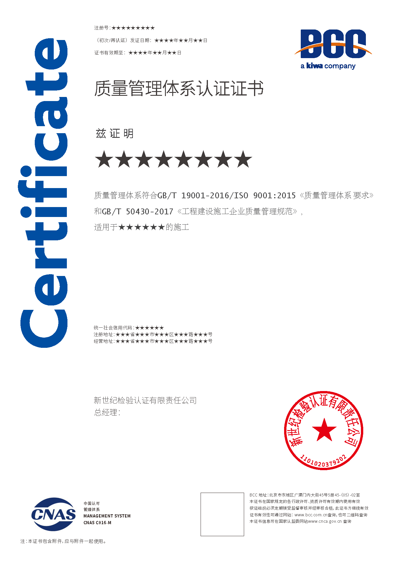 質(zhì)量管理體系證書(建筑施工50430) 質(zhì)量證書(一部分是50430) 質(zhì)量管理培訓(xùn)評價證書