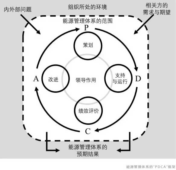 ISO 50001提供了一個(gè)方法框架,用于開發(fā)有效的能源管理系統(tǒng),與其他ISO管理體系標(biāo)準(zhǔn)一樣,能源管理體系遵循“計(jì)劃-執(zhí)行-檢查-行動(dòng)”(PDCA)流程,以實(shí)現(xiàn)持續(xù)改進(jìn)。