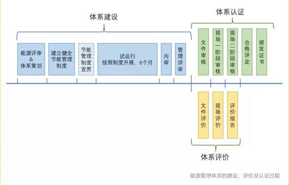 用能單位開展能源管理體系工作,通常包括:體系建設(shè)、認(rèn)證或評(píng)價(jià)、持續(xù)運(yùn)行和不斷提升的過程。