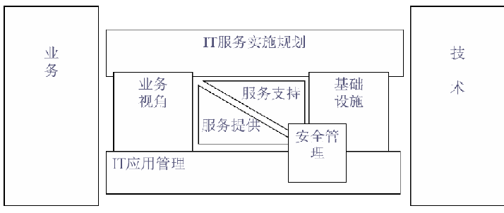 IT 服務(wù)實施規(guī)劃處于整個結(jié)構(gòu)的最高層,功能是對框架內(nèi) 6 大模塊開展各項工作進行指導,幫助用戶分析現(xiàn)有情況,協(xié)助設(shè)定發(fā)展戰(zhàn)略與目標,同時在實踐中對完成的工作進行評測,給出調(diào)整意見。