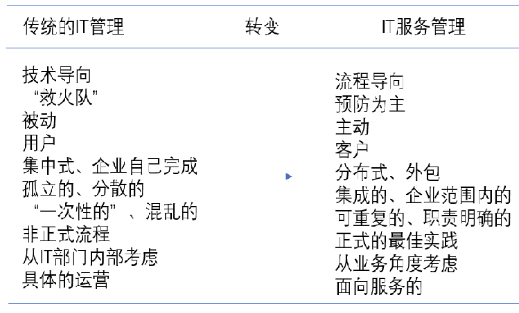 根本出發(fā)點(diǎn)在于通過(guò) IT 服務(wù)有力的支持企業(yè)的發(fā)展以及業(yè)務(wù)部門業(yè)務(wù)的開展,促進(jìn)企業(yè)競(jìng)爭(zhēng)力的有效提升。在 IT 管理當(dāng)中,IT 服務(wù)管理屬于不可或缺的構(gòu)成部分。但是IT 服務(wù)管理有別于傳統(tǒng)的 IT 管理,其存在的意義在于將基于服務(wù)之上的 IT 管理提供給購(gòu)買 IT 服務(wù)的企業(yè)或內(nèi)部部門。